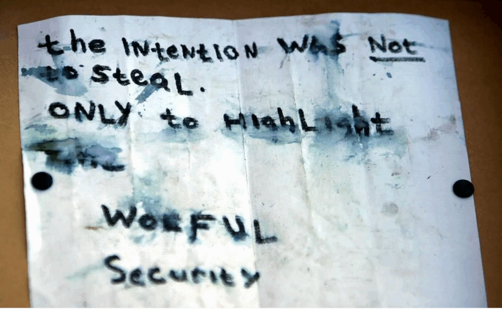 At 9 o’clock one April evening, 22 years ago, thieves burst through the back doors of the Whitworth Art Gallery in Manchester. They removed 3 paintings: a Picasso, a Gauguin and a Van Gogh, adding up to a tidy £4m. Police could find no clues in the gallery, but an anonymous tipoff led them …to a disused public toilet in the park. There were the paintings, rolled up in a damp cardboard tube, with a scrawled note.